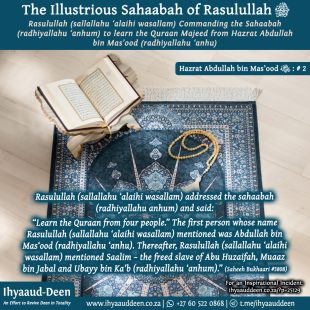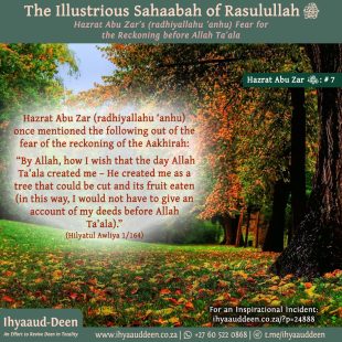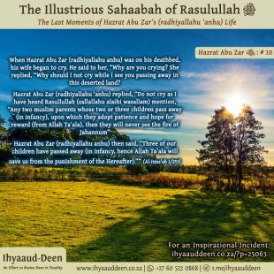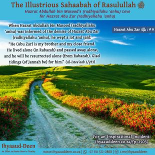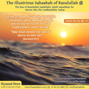 Rasulullah (sallallahu ‘alaihi wasallam), together with the Banu Haashim and Banul Muttalib clans, remained in the Valley of Abu Taalib under boycott for three years. As per the terms of this oppressive boycott, they were prevented from entering the market places, and the people of Makkah Mukarramah would neither sell …