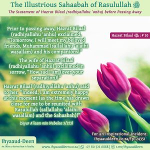 Hearing this, Rasulullah (sallallahu ‘alaihi wasallam) said, “We will go out of our way to take care of him (i.e. Hazrat Abu Quhaafah (radhiyallahu ‘anhu)) and show him special consideration on account of the abundant good that we have received from his son (i.e. Hazrat Abu Bakr (radhiyallahu ‘anhu)).”